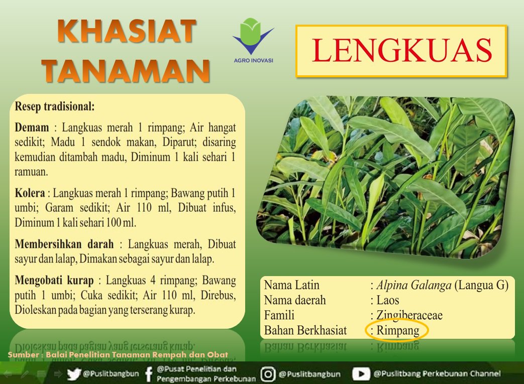 تويتر Puslitbangbun على تويتر Selamat Siang Sobatani Info Khasiat Tanaman Obat Lengkuas Ternyata Selain Untuk Masak Tanaman Lengkuas Juga Bisa Digunakan Sebagai Obat Sehari Hari Kita Looh Hasil Penelitian